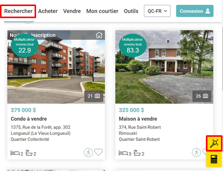 Pour se faire, cliquez sur la baguette, puis sélectionnez le critère de recherche walkscore. Une fois validé, les biens immobiliers apparaitront avec la note de leur walkscore.