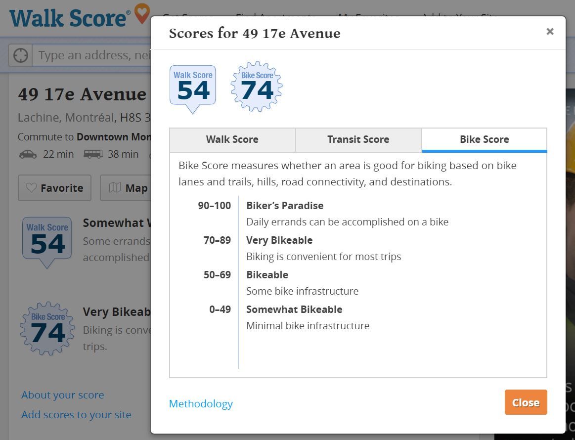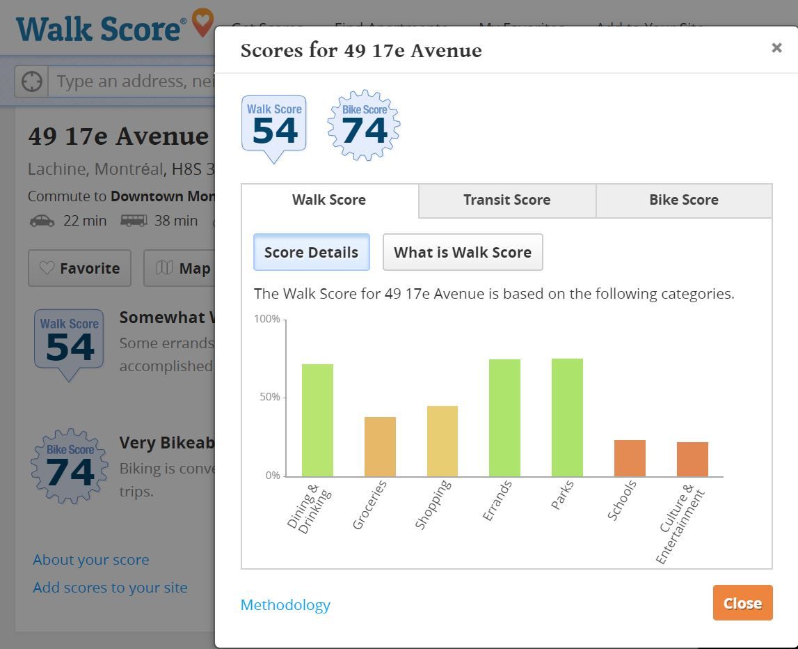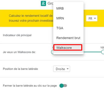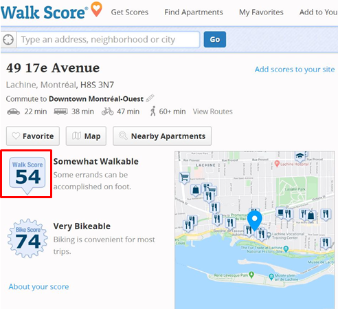 - Si votre critère de choix n°1 est l'emplacement et l'accessibilité du bien immobilier nous vous conseillons de rechercher des propriétés en fonction de leur "walkscore" (Note sur 100 des commodités à proximité du bien immobilier).